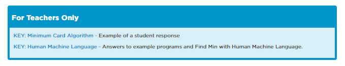 This lesson ran fairly quick for my class. About 40 minutes for both activities. Are there any sorting or searching algorithm lessons in code.org (bubble, linear, insertion, binary, etcā¦)? I was tempted to have some of my students who finished this lesson quickly to write an algorithm to sort the list of 8 cards and wrap it up with a lesson explaining the types of sorting and searching algorithms.